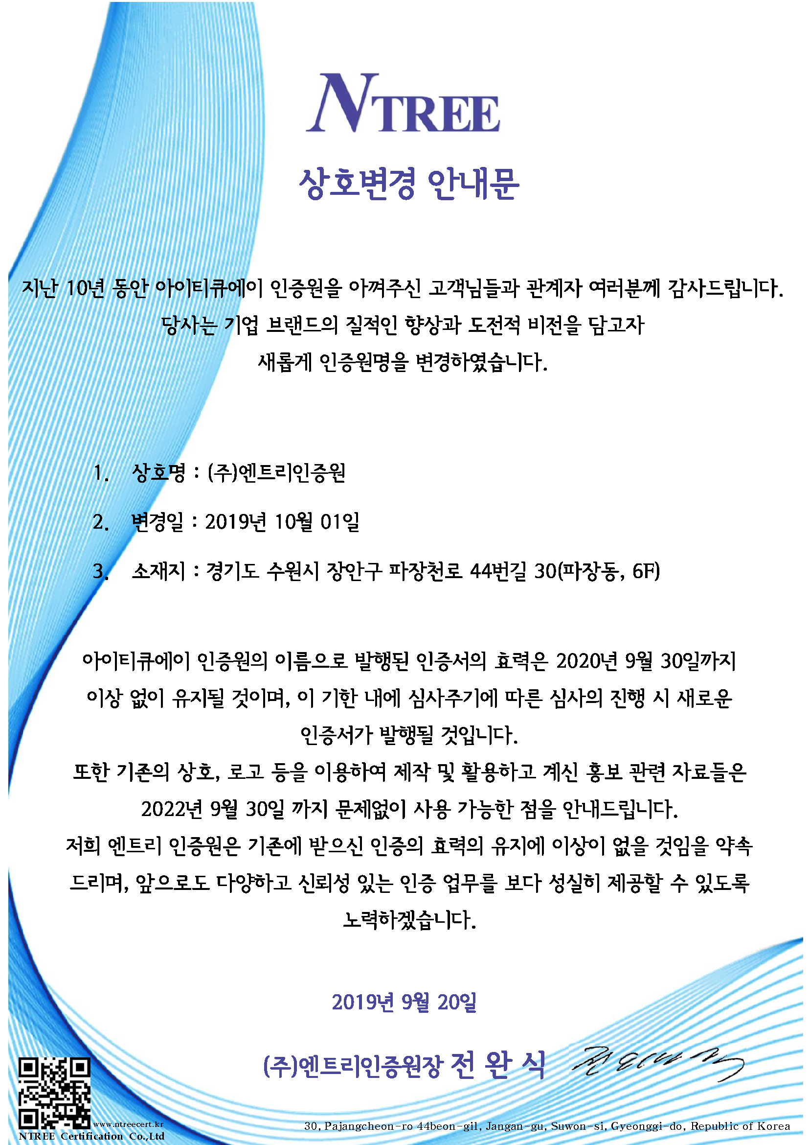 [공지사항] NTREE ISO22000 인증기관 지정 안내